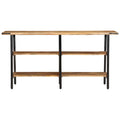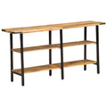 Add a touch of elegance to your entryway, living room, or hallway with this stylish console table. Robust and stable material: Solid mango wood, a robust tropical hardwood, is highly favoured for furniture making for its exceptional durability and strength. Its beautiful wood grains make every piece of furniture slightly different from the next.Stable and long-lasting frame: The metal frame of the table enhances your interior with an industrial style and provides exceptional durability, stability and resistance to corrosion.Sturdy tabletop: The sturdy tabletop of the hallway table is perfect for placing your framed photos, potted plants, and other decorative items.Ample storage space: The 3-tier hall table provides enough storage space for you to keep various daily essentials organised and within easy reach.Easy to maintain: Thanks to its smooth surface, the side table is easy to clean with a cloth and requires less maintenance. Good to know:Each item is unique with variations in colours and grains. The delivery is random, ensuring the exclusivity and individuality of your product.