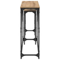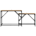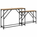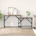 The console table is a refined blend of style and practicality, offering an elegant solution to home storage and display needs. With its sleek modern aesthetic characterized by simple lines and minimal ornamentation, this console table brings a sense of sophistication to any hallway or living area. Stylish Engineered Wood Surface Crafted from high-quality engineered wood, this surface showcases a beautiful finish that replicates the aesthetics of real wood while offering increased durability and resistance to wear over time. Its smooth tabletop is perfect for displaying cherished objects, books, or decorative items, elevating the look of your space. Robust Metal Frame The metal frame of the console table ensures lasting support and stability, making it a reliable choice for everyday use. Its black finish adds a touch of sophistication, seamlessly blending with modern and traditional decor. This solid construction guarantees the table remains resilient through years of use. Nested Design Featuring a space-efficient nesting design, these tables provide versatile options for arrangement and use. Whether stacked for storage or displayed separately, they offer unique styling possibilities tailored to your room's layout. This flexibility greatly enhances your ability to optimize space efficiently. Functional Storage Space With generous surface area, the console table is perfect for holding essential items like keys, mail, or decorative accents. Its smart design aids in reducing clutter, keeping personal items organized and within reach, adding both form and function to your space. Easy Assembly Needed Assembly is required and is best accomplished by two people using basic tools like a screwdriver and hammer. This hands-on process, while straightforward, ensures that your table is securely constructed for optimal use and longevity.