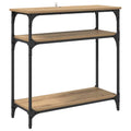 This Industrial Slim Console Table is a perfect blend of modern design and practical functionality, offering an appealing solution to enhance any living space. Designed with an urban loft inspiration, it incorporates raw materials to create a sleek, chic addition suitable for various home aesthetics. With its narrow build, it seamlessly fits against walls, serving both display purposes and storage needs, allowing you to showcase your favorite items or keep essentials within reach. Materials: Skillfully crafted from engineered wood, this console table offers durability and a smooth texture, resistant to everyday wear and tear. Its matte finish adds an elegant, subtle sheen, contributing to a sophisticated ambiance in your living room. This carefully selected material ensures a long-lasting piece that complements various interior styles and colors. Included Components: Equipped with versatile board shelves, the console table provides ample space for organizing and displaying items like books, decorative pieces, or small electronics. Its powder-coated metal frame gives both aesthetic appeal and robust support, ensuring your items are held securely. Features /Function /Design: This table combines industrial flair with functional design, making it perfect for homes seeking a modern twist. Designed for indoor use, it pairs well with contemporary or minimalist decor. Its square legs add geometric interest while supporting the structure with unwavering stability. Recommended Uses: Ideal for living rooms, entrance ways, or hallways, this table serves not only as a focal piece but also a functional element for storing and showcasing essentials. Its sleek profile makes it suitable for both small and large spaces, adapting easily to different contexts. Care &Maintenance: To maintain its pristine condition, simply wipe with a damp cloth, avoiding harsh chemicals and abrasives. This easy care routine ensures the table remains an exquisite part of your decor for years to come, highlighting its practicality and elegance.