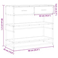 This console table offers ample storage space while complementing your home decor. It’s perfect for the living room, bedroom, and hallways. Stable and durable material: Engineered wood is a durable and stable material with a smooth surface that is resistant to moisture, warping, and splitting, making it a reliable choice for a variety of projects.Stable and long-lasting frame: The metal frame of the sofa table enhances your interior with an industrial style and provides exceptional durability, stability and resistance to corrosion.Ample storage space: This hall table has drawers and shelves to provide storage space to keep your magazines, books, remote controls, and other small items within reach.Sturdy tabletop: The hallway table has a sturdy tabletop, on which you can place food or drinks, or display decorative objects like photo frames or even potted plants.Easy to maintain: Thanks to its smooth surface, the hallway stand is easy to clean with a damp cloth and requires less maintenance. Warning:To prevent it from tipping over, this product must be used with the provided wall attachment device.