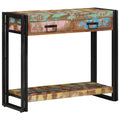 This Rustic Console Table adds sophistication and practicality to any indoor setting. It is a narrow table designed to fit comfortably against a wall, making it perfect for hallways or living rooms. With its modern style characterized by clean lines and minimal ornamentation, this console table offers a functional yet elegant touch to your home's decor. Durable Steel Frame The frame is crafted from steel, ensuring a stable and long-lasting support structure for the console table. This robust framework makes the table suitable for everyday use, accommodating various items without compromise. Traditional Drawer Mechanism Featuring spacious drawers with a traditional pull-handle design, this table provides convenient storage options. The drawers smoothly open and close, offering ample space for storing essentials out of sight while maintaining a tidy environment. Modern style The console table boasts a contemporary aesthetic with its understated elegance, fitting seamlessly with various interior styles. Its clean lines and sleek appearance make it a versatile piece adaptable to any room or decorative preference. Indoor Use Specifically designed for indoor settings, this table complements hallways and entryways, offering a stylish solution for space management and decorative presentation. Simple Assembly Requirements With assembly instructions provided, this table requires two people and a screwdriver for setup. Following the outlined steps ensures the table is securely and correctly constructed for optimal use.