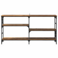 The Industrial Console Table with Shelves serves as an eye-catching focal point in any contemporary living space. This piece not only fulfills a functional requirement with its surface and storage capabilities but also echoes an industrial chic aesthetic. Anchored with black metal components and engineered wood, it embodies a sophisticated blend of raw materials suitable for urban lofts or modern interiors. With its versatile design, this console table adapts seamlessly in living rooms, entryways, or corridors, enhancing the decor while providing practical storage solutions. Durable Construction Built with an engineered wood surface, this console table promises lasting strength and a stable platform for displaying decor. The metal frame provides solid support, reinforcing the table's integrity for years of enjoyment. Each element is carefully constructed to withstand daily use. Industrial Chic Design Features an industrial style that effortlessly complements modern urban interiors. The combination of black metal legs and a rustic wood surface brings a harmonious balance of warmth and sophistication into your space, creating a visually appealing and highly functional addition. Ample Storage Space Includes several board shelves for organizing your essentials, from books to decorative accents. The open-shelf design not only enhances accessibility but also invites unique styling opportunities to display personal items, making them easily visible and admirable. Easy Maintenance Surface materials are crafted for easy cleaning. Simply wipe with a damp cloth to maintain a fresh appearance. To ensure durability, avoid harsh chemicals or abrasives that could damage the finish, ensuring the table remains as vibrant as the day it was purchased. Assembly Required Setup requires a screwdriver and the coordination of two individuals, ensuring proper assembly for safe, stable use. Despite the need for assembly, the process guarantees that the table structure remains steadfast and secure over time.