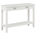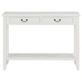 Add a touch of elegance to your home decor with our classic wooden console table! Made of MDF, solid pine wood and a unique paulownia veneer, this console table will make a great addition to your interior. It can also be used as a side table or sideboard. The table has a sturdy MDF table top, on which you can place decorative items like fruit baskets or vases. Solid pine wood legs guarantee its stability and durability, ensuring years of service. Additionally, the 2 drawers provide ample space for keeping all kinds of smaller items organised and within reach. The shelf offers an extra place for storing your shoes and other belongings.