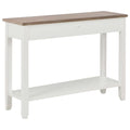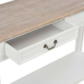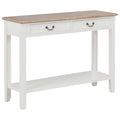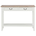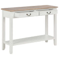 Add a touch of elegance to your home decor with our classic wooden console table! Made of MDF, solid pine wood and a unique paulownia veneer, this console table will make a great addition to your interior. It can also be used as a side table or sideboard. The table has a sturdy MDF table top, on which you can place decorative items like fruit baskets or vases. Solid pine wood legs guarantee its stability and durability, ensuring years of service. Additionally, the 2 drawers provide ample space for keeping all kinds of smaller items organised and within reach. The shelf offers an extra place for storing your shoes and other belongings.