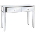 This contemporary mirrored console table will bring a touch of elegance to your home. Thanks to the mirrored surface, the table will instantly upgrade your interior decor and creates a spacious feel. It can also be used as a desk or hall table. The side table is adorned with sleek mirrored glass and exudes a sophisticated air. The table has an MDF frame, making it sturdy and durable. The two drawers provide space for keeping all kinds of smaller items organised and within easy reach. The faux crystal knobs add to its elegant charm and make it easy to open the drawers. The console table is easy to assemble.