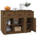 This classic wooden sideboard is a perfect addition to your bedroom, living room, or office, creating a lasting impression! Sturdy material: Solid pine wood is a beautiful natural material. Pine wood has a straight grain, and the knots give the material its signature, rustic look.Ample storage: This sideboard has 6 compartments and 3 drawers, providing ample storage space for keeping your magazines, books, DVDs and multimedia devices well-organised and within reach.Displaying function: The sturdy top of this side cabinet is a perfect spot for displaying your favourite decorative objects, photo frames and potted plants. Warning:In order to prevent overturning, this product must be used with the wall attachment device provided. Note:Each product comes with an assembly manual in the box for easy assembly.