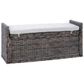 This Wardrobe Bench Stool with Storage Space is a beautifully crafted piece designed to blend seamlessly into modern interiors with its clean lines and minimal ornamentation. Offering both seating and storage solutions, this dual-purpose bench makes for an exceptional addition to living rooms and bedrooms. Its sleek, rattan construction paired with a smooth bench cushion provides comfort and a stylish finish, making it a practical yet fashionable choice for any home. Materials: Crafted using high-quality Rattan and Solid Mahogany wood, this bench ensures not only longevity but also an elegant appearance. The rattan gives a unique texture and warmth, while the mahogany wood enhances its sturdy build. This combination offers both functionality and style, promising a piece that enhances your home decor. Included Components: Equipped with a single, long bench cushion that spans across the seating space, this bench provides comfort for extended sitting periods. The cushion adheres to the modern design ethos, ensuring both aesthetic appeal and practicality by complementing the overall look while being easy to remove for cleaning. Features /Function /Design: Its multifunctional design allows you to utilize the bench both as a seating option and a storage space, making it ideal for optimizing room organization. Perfect for tucking away extra books, blankets, or seasonal clothing, this bench offers a neat, uncluttered environment. With an emphasis on clean lines and functionality, it captures the essence of modern furniture design. Recommended Uses: Perfect for indoor use, set this bench in your living room behind a couch for added seating, or place it in your bedroom for extra organization. Its convenient size allows it to fit snugly under windows or against walls, providing additional usability without infringing on your space's design. Care &Maintenance: To retain its pristine condition and prolong its lifespan, gently clean the rattan surface with a dry cloth to remove dust. The cushion can be spot-cleaned with mild soap and water if necessary. Avoid using harsh chemicals to ensure the materials preserve their look and feel. This simple maintenance regimen guarantees the bench remains a durable piece in your home.